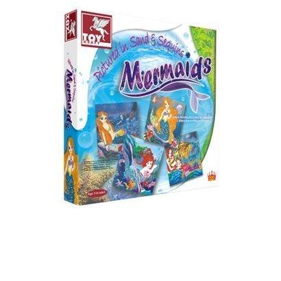 Możesz stworzyć obrazki pięknych syren w ich naturalnym podwodnym otoczeniu, używając piasku i cekinów. Gotowe obrazki mogą być użte do legendy o Małej Syrence.