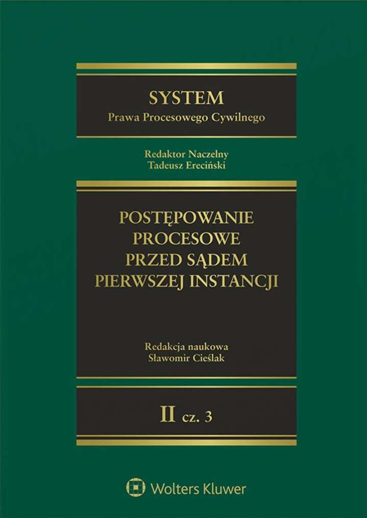 Prezentujemy Państwu kolejną publikację z tej serii, stanowiącą część 3 tomu II „POSTĘPOWANIE PROCESOWE PRZED SĄDEM PIERWSZEJ INSTANCJI”. W książce pod redakcją naukową prof. dra hab. Sławomira Cieślaka omówiono postępowania odrębne w procesie cywilnym, przy czym przedstawiono tu procedury, których funkcją jest udzielanie ochrony prawnej interesowi indywidualnemu. Ochrona interesu zbiorowego i grupowego w sprawach cywilnych w szczególnych rodzajach procesu cywilnego została wyłączona do kolejnej części 4 tomu II, zaś europejskie postępowania w sporach transgranicznych, jakimi są europejskie postępowanie nakazowe oraz europejskie postępowanie w sprawie drobnych roszczeń, zostaną zamieszczone w tomie VII Systemu poświęconym Międzynarodowemu i europejskiemu prawu procesowemu.