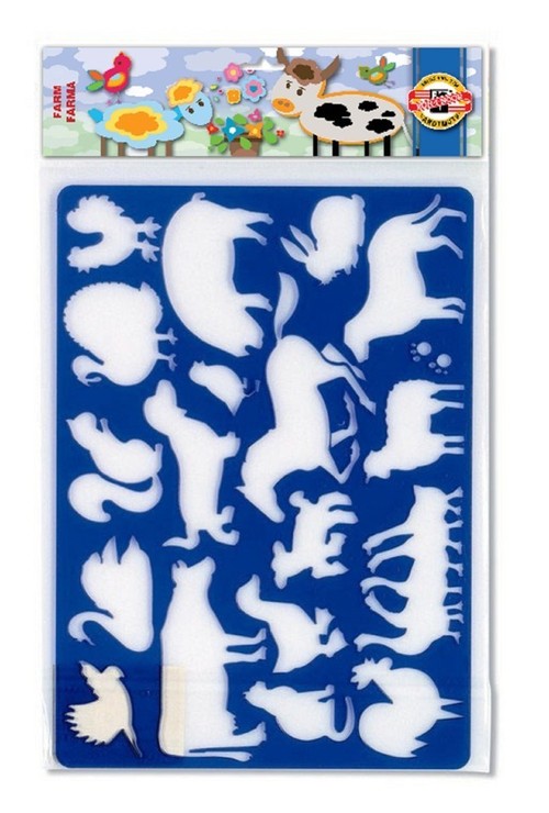 Szablony idealne do dziecięcych zabaw oraz samodzielnego przygotowywania różnego rodzaju ozdób. Do odrysowywania ołówkiem, cienkopisem, kredkami. Wzór farma - zwierzęta domowe.