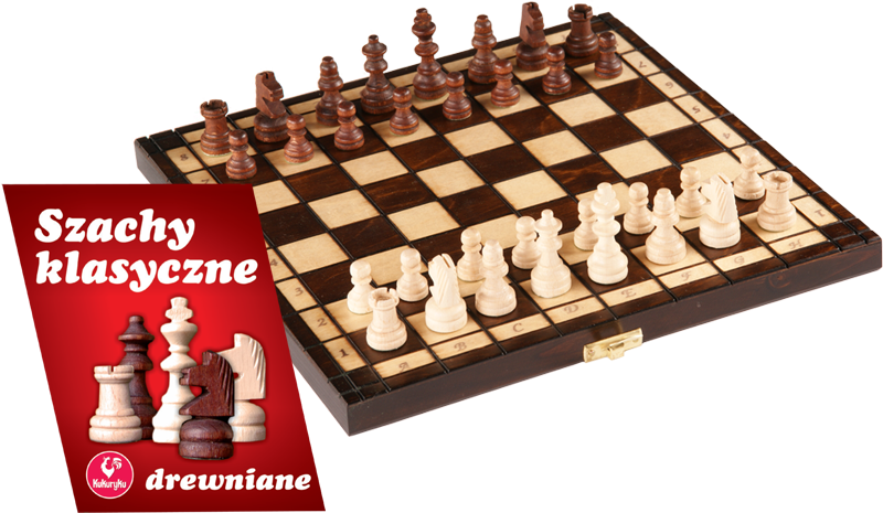 Szachy klasyczne drewniane. Plansza jest jednocześnie pudełkiem na figury.