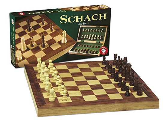 Szachy wykonane z drewna. Wymiar szachownicy 41,5 x 41,5 cm. Wysokość króla 7,5 cm.