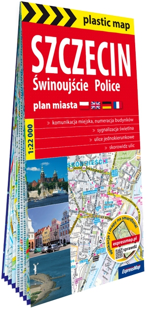 Zabytkowe wnętrza Zamku Książąt Pomorskich, niezapomniane widoki z wieży kościoła św. Jakuba oraz efektowne nabrzeże portu, czyli Wały Chrobrego to tylko niektóre atrakcje Szczecina. Nasz dwustronnie foliowany, trwały plan stolicy województwa zachodniopomorskiego pomoże odnaleźć ich jeszcze więcej. Mapa obejmuje także Świnoujście i Police.