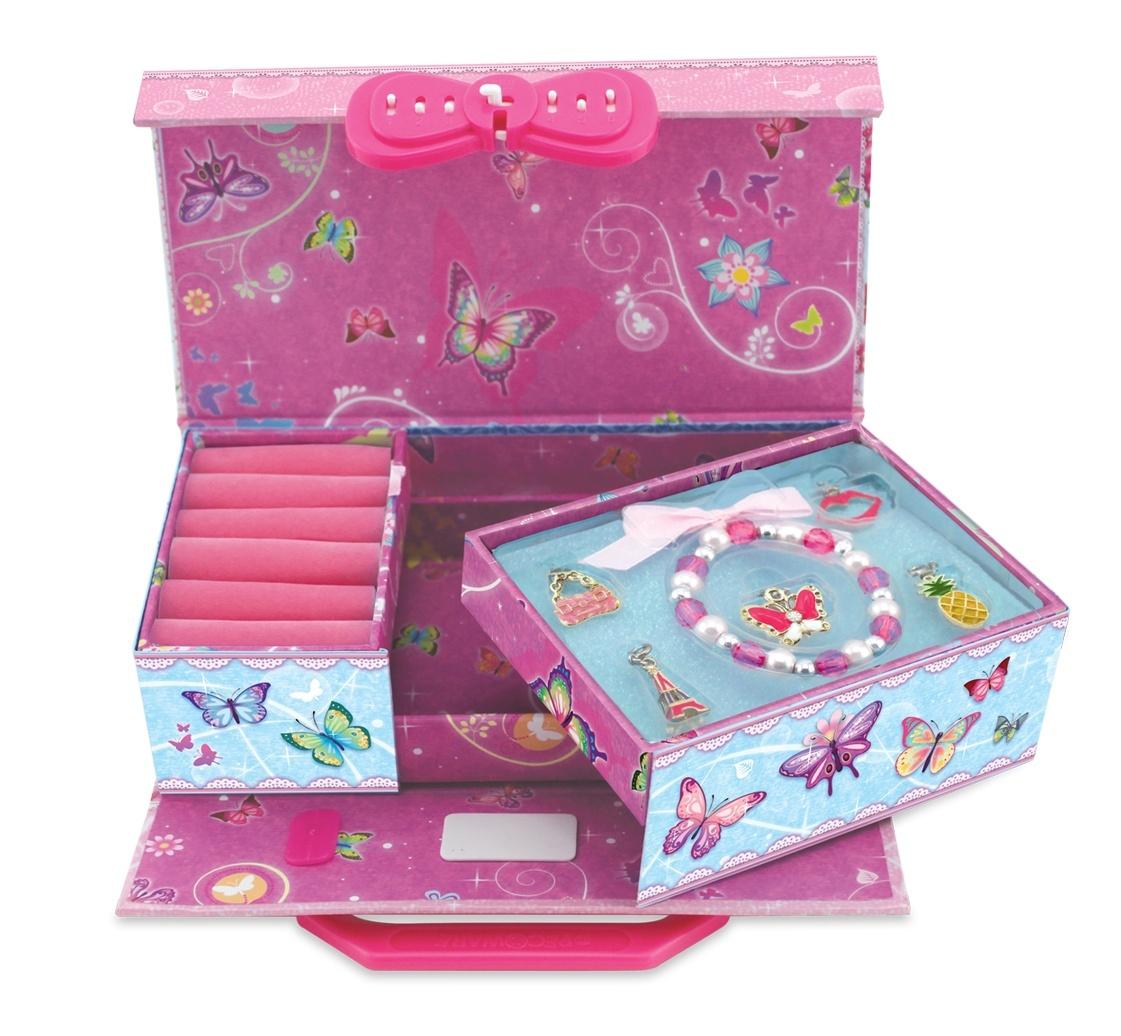 Szkatułka zamykana na zamek z szyfrem. W zestawie znajduje się bransoletkai 5 zawieszek typu ‘charms’ do dowolnego ozdabiania. Wiek: 6+