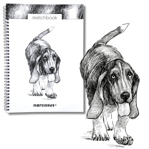 NARCISSUS szkicownik artystyczny na spirali A4 Pies Basset, 50 kartek z perforacją