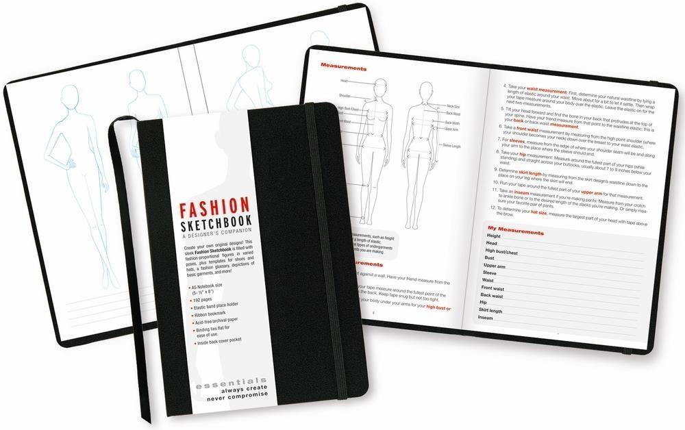 Szkicownik Modowy pomagający projektantom tworzyć własne kreacje zawierający kilka stron z informacjami o projektowaniu ubiorów. W środku znajdują się szkice sylwetek kobiecych z każdej strony tak, żeby można było zaprojektować ubiór ze szczegółowymi elementami. Na samym końcu znajduje się dział przeznaczony projektom dodatków do ubrań takich jak kapelusze oraz buty. Czarna twarda okładka nie rozprasza twórcze myśli. Produkt posiada czarną wstążke jako zakładkę, elastyczną gumkę i kopertę z tyłu na drobne notatki. Okładka sztywna. 192 strony. Wymiary 14,8x21 cm.