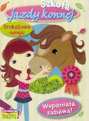 Książka z brokatowymi naklejkami witamy w szkole jazdy konnej. Książeczka zawiera naklejki kolorowanki brokatowe naklejki i łamigówki.