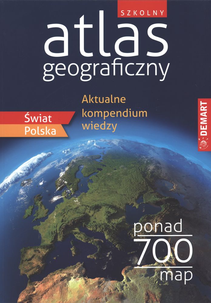 Szkolny atlas geograficzny zawiera aktualne informacje o świeci i Polsce, najnowsze dane statystyczne i charakterystyki społeczno-gospodarcze, obraz środowiska naturalnego i walory turystyczne, analizy przyrodnicze, gospodarcze i społeczne Polski kilkaset map wykonanych różnymi metodami prezentacji danych, skorowidz nazw.