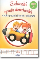 Zeszyt "Szlaczki rysują dzieciaczki" zawiera proste kształty, które z czasem zmieniają się w trudniejsze do kreślenia znaki.