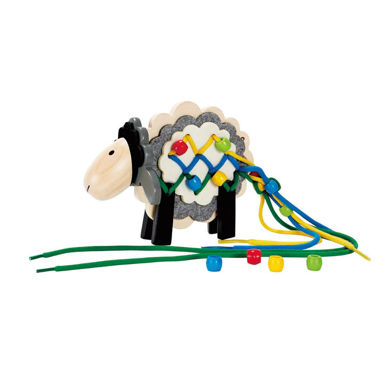 Zabawka promuje oryginalność i pobudza kreatywną stronę dziecka. Urocza owieczka do przewiązywania różnokolorowymi sznurówkami i koralikami.