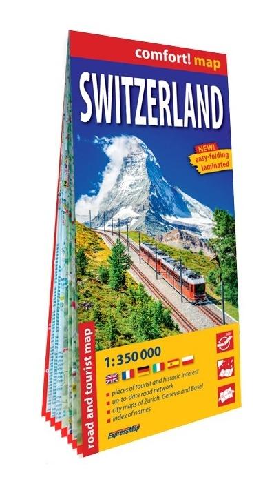 Zabytki Berna, Bazylei i Lozanny, majestatyczne szczyty Alp i malownicze jeziora, dostojne zamki i klasztory... Długo można by wymieniać atrakcje Szwajcarii. Dwustronnie laminowana, wygodna w składaniu i trwała mapa samochodowo-turystyczna pomoże zaplanować udany pobyt w kraju sera i zegarków.