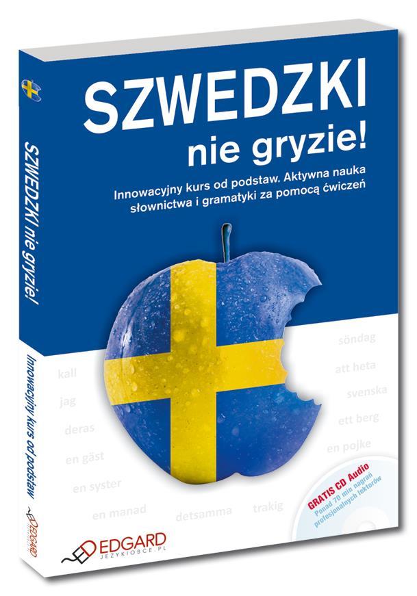 SZWEDZKI nie gryzie!to kurs, z którym:- aktywnie uczysz się języka od podstaw,- przyjemnie poznajesz użyteczne słownictwo,- praktycznie trenujesz znajomość gramatyki,- uczysz się gotowych zwrotów konwersacyjnych,- poznajesz współczesny, codzienny język szwedzki.Kursprzeznaczony jest zarówno dla uczniów, jak i dorosłych samouków dopiero zaczynających naukę, którzy chcą łatwo i przyjemnie opanować podstawy języka szwedzkiego na poziomie komunikacyjnym.Książka(152 str.) opiera się na niezwykle atrakcyjnej metodzie aktywnej nauki języka poprzez rozwiązywanie różnorodnych ćwiczeń. W rozdziałach tematycznych znajdziesz: około90 najpopularniejszych zagadnień, krótkiedialogi lub tekstyz polskim tłumaczeniem,gramatykę w pigułce, porcję niezbędnegosłownictwa, ćwiczenia, ciekawostki o kulturze oraz specjalną sekcję Sprawdź się z zadaniami podsumowującymi. W każdej chwili masz dostęp do umieszczonych na marginesach praktycznychminisłowniczków, a dodatkowo na końcu książki znajdziesz podręcznyzbiorczy słownik.GRATIS płyta CD Audioz ponad 70 minutami nagrań profesjonalnych lektorów, która pomaga w nauce poprawnej wymowy i skutecznym zapamiętywaniu niezbędnych słów i zwrotów.Odkryj unikalną metodę aktywnej nauki. Przekonaj się, że szwedzki nie gryzie!