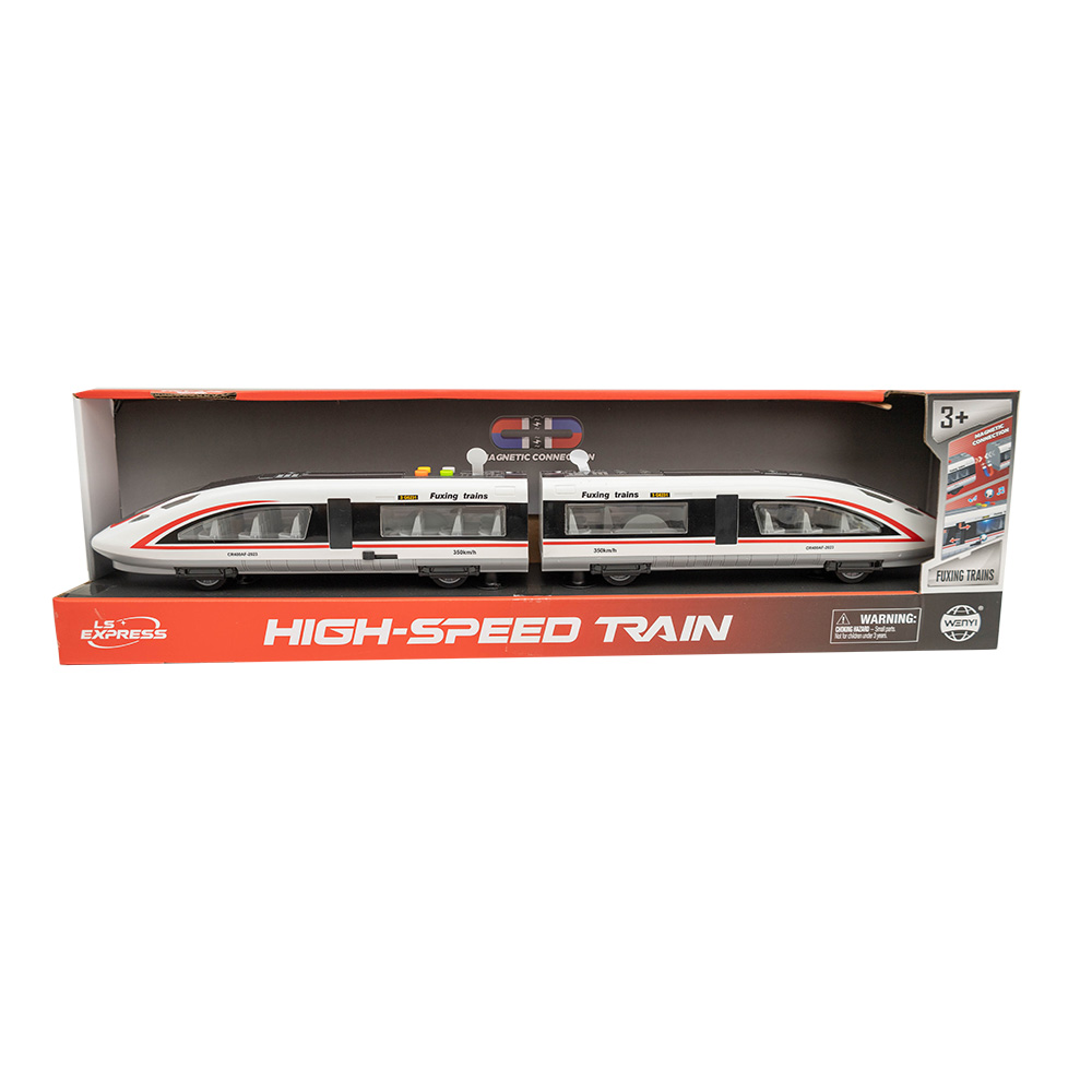 "Szybka kolejka Wagony łączone na magnez, w momencie podłączenia wagoników włączają się światła 4 dźwięki - jazdy pociągu, alarmowy, dźwięk zatrzymynia, sygnał ciągły, otwierane drzwi Wymiary kolejki 57 x 5.5 x 7 cm Wymiary opakowania: 59 x 10 x 17 cm Zasilanie: 6xAG13 (dołączone) Wiek 3+"
