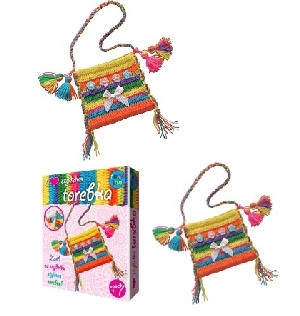 Zestaw dla dzieci w wieku powyżej 7 lat . Zestaw zawiera włóczkę w 7 kolorach , szydełko , plastikową igłę, metalową igłę , elementy dekoracyjne oraz szczegółową instrukcje , jak wykonać na szydełku torebkę.