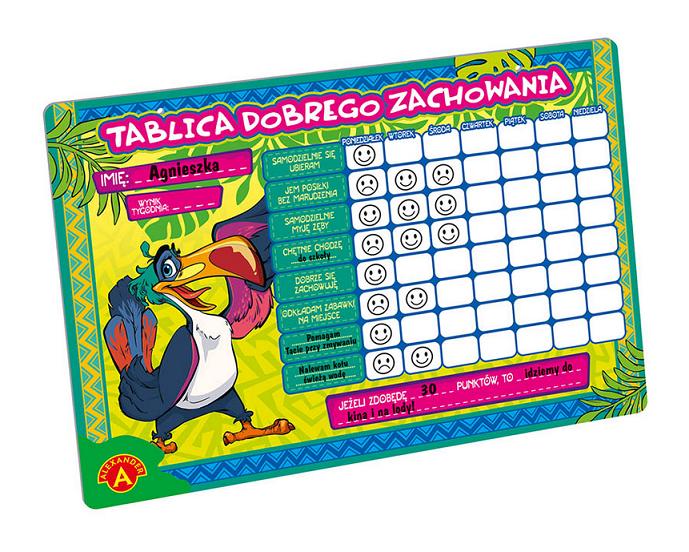Tablica pozwala na notowanie zachowania dziecka w postaci punktów dodatkach i ujemnych (zaznaczanych