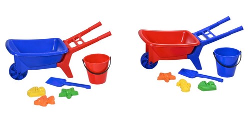 Zestaw: Taczka i 5 elementów do zabawy w piasku.