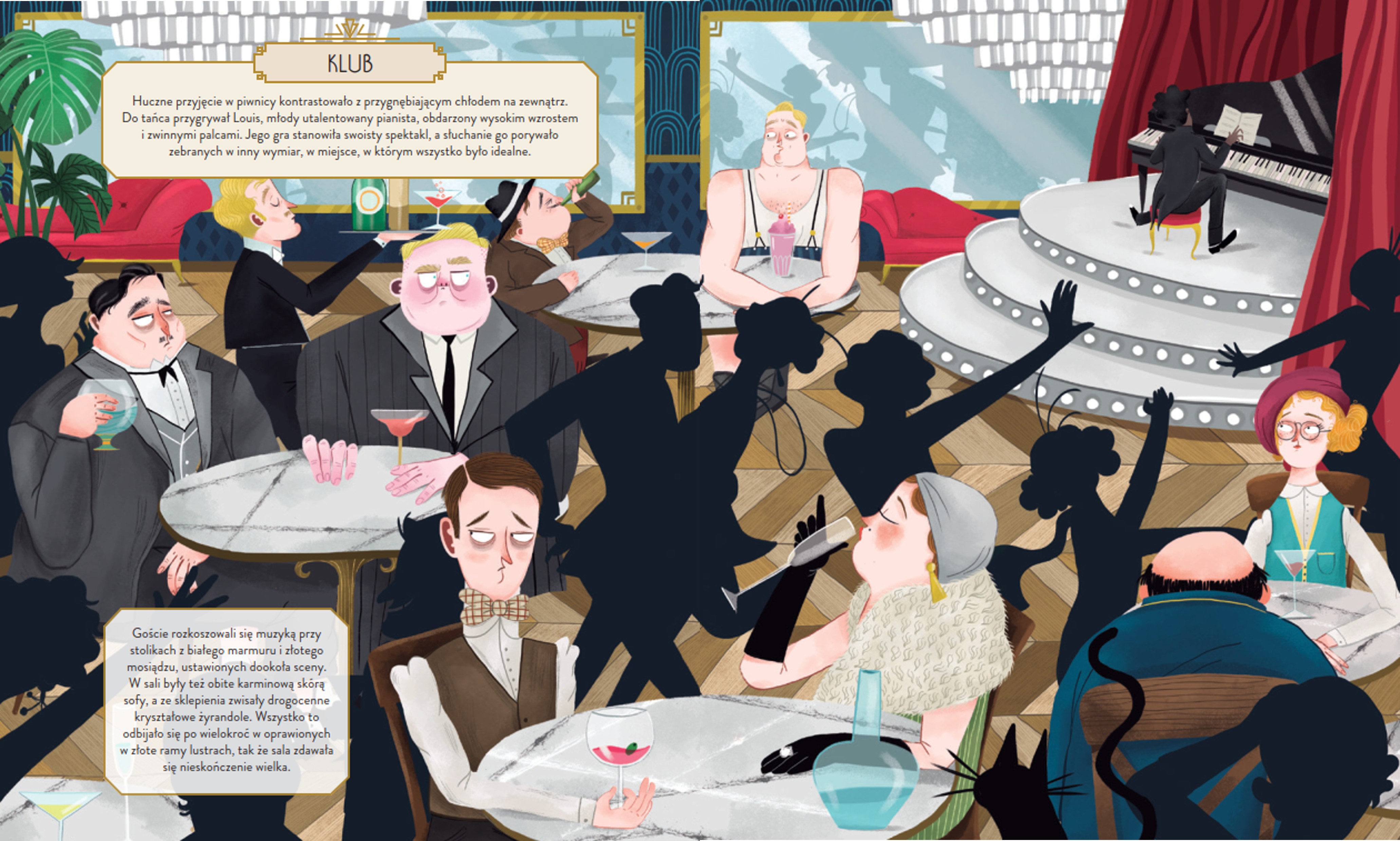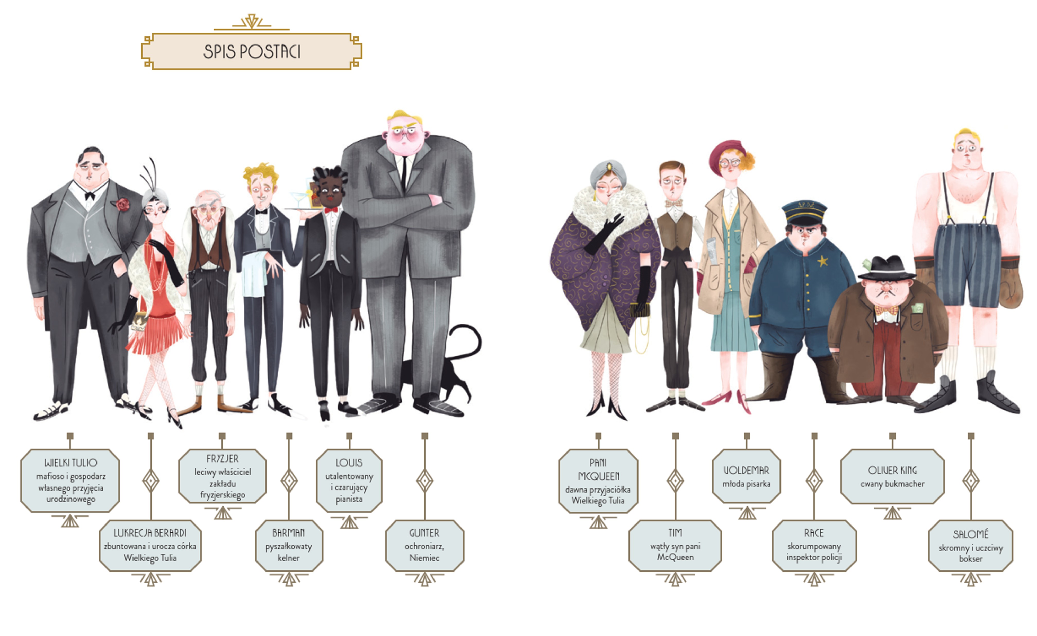 Chicago, lata dwudzieste. W tajnym klubie ukrytym w piwnicy zakładu fryzjerskiego gangster Wielki Tulio szykuje się do obchodów swoich pięćdziesiątych urodzin. Na imprezie stawi się cała śmietanka miasta, lecz niektórzy z gości mają aż nadto powodów, by nienawidzić jubilata. Wtem gasną światła i rozlega się huk wystrzału! Wielki Tulio ginie w obecności wszystkich zaproszonych! By wydedukować, kto jest sprawcą, czytelnik musi szybko główkować i analizować tropy. Pomoże mu w tym młoda pisarka Voldemar. Wszyscy goście są podejrzanymi, a pozory mylą! Ilustrowany Tajny klub "U Fryzjera” to hołd złożony kryminałom i wszelkim klasycznym powieściom detektywistycznym w stylu Agathy Christie.