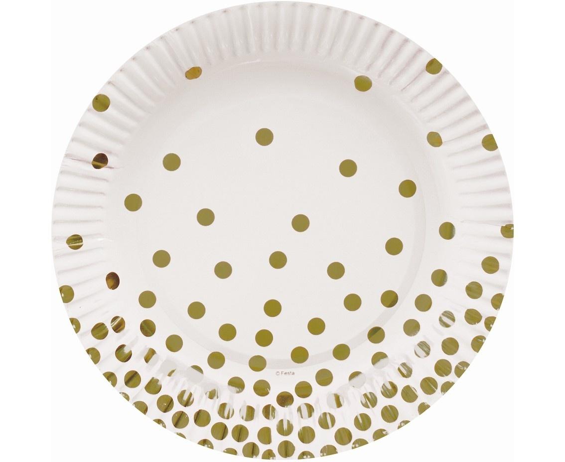 Talerzyki papierowe "Złote groszki", białe, 18 cm, 6 sztuk