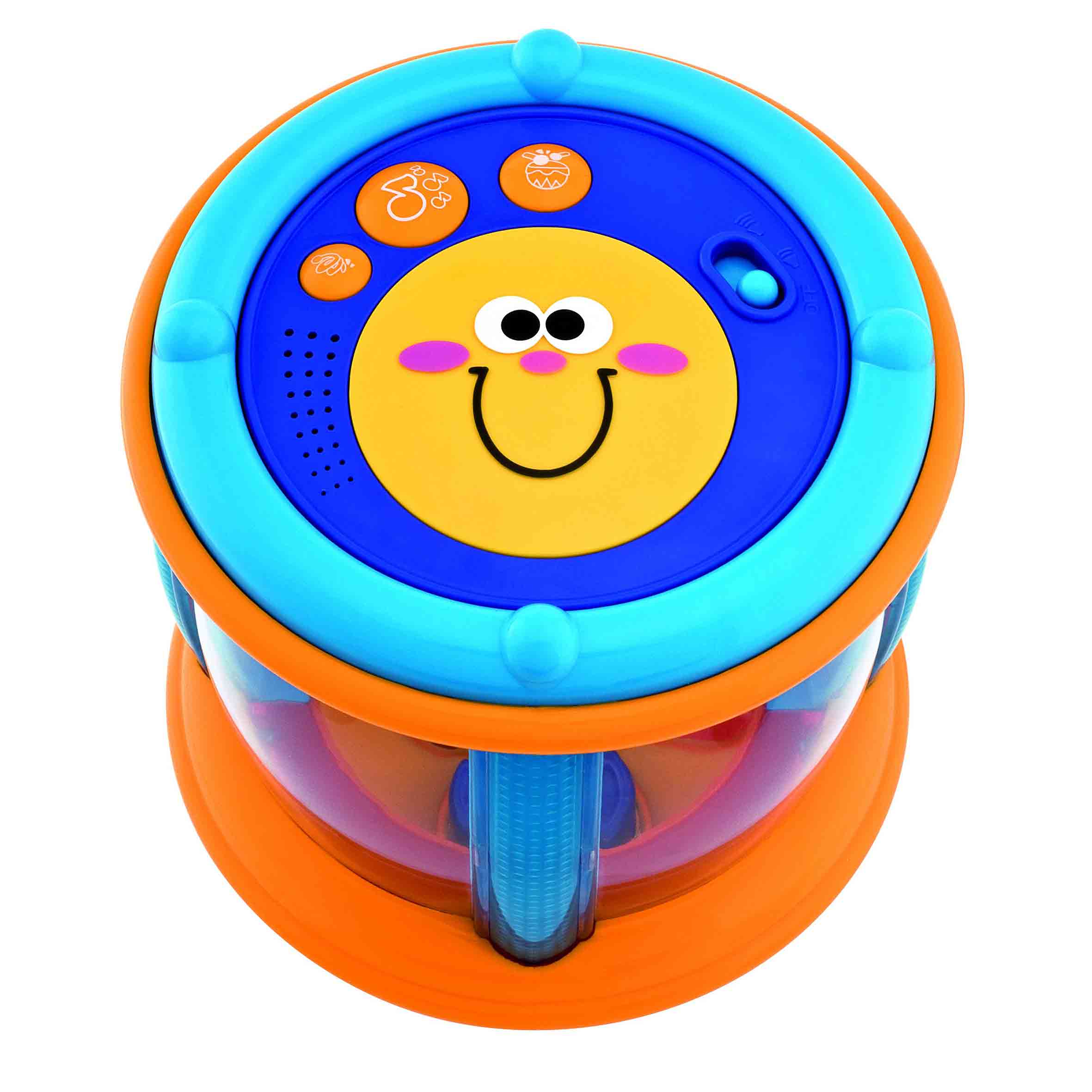 Zabawkowy instrument oraz sorter kształtów w 1! Tamburyn 2w1 pomaga dziecku w koordynacji i udoskonaleniu ruchów, rozwija jego zdolność do logicznych skojarzeń i muzyczną wrażliwość. Zabawka ma podwójną funkcję. Z jednej strony to elektroniczny tamburyn, na którym dziecko może grać przy użyciu rączek bądź pałeczek. Z drugiej to pojemnik - sorter z trzema kolorowymi foremkami do wkładania we właściwe otwory. Kształt zabawki pozwala na obracanie jej i turlanie, zachęcając dziecko do raczkowania. Kolory tamburyna zostały opracowane przez projekt Color Research, skierowany na rozwój poszczególnych stadiów rozwoju wzroku i postrzegania kolorów przez dziecko.