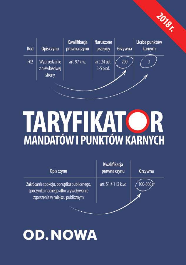 Najnowsze wydanie Taryfikatora mandatów i punktów karnych zawiera aktualny wykaz naruszeń przepisów ruchu drogowego i liczbę punktów odpowiadającą tym naruszeniom, wysokość grzywien określonych w załączniku do Rozporządzenia Prezesa Rady Ministrów w sprawie wysokości grzywien nakładanych w drodze mandatów karnych za wybrane rodzaje wykroczeń. Wydanie zawiera także przepisy dotycząc postępowania mandatowego, przepisy o kontroli ruchu drogowego oraz grzywny za naruszenia ustawy o transporcie drogowym. Największą zaletą tej pozycji jest zestawienie w jednej tabeli naruszenia przepisu z punktami karnymi, wysokością grzywny oraz kodem naruszenia. Wyszukiwanie ułatwia przejrzysty układ (w tym wizualizacja w postaci kolorowych znaków drogowych)