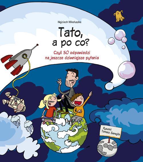Już są! Proste odpowiedzi na 50 nowych, piekielnie trudnych pytań. Ida i Kacper, bohaterowie książki ,,Tato a dlaczego?"", tym razem pytają ,,Tato, a po co?"". Te dzieciaki nie mają sobie równych w dociekaniu, jak działa ten nasz świat i po co to wszystko, co nas otacza, czego doświadczamy i czym sami jesteśmy. Pytania, które zadają są bardzo różne: niekiedy śmieszne, czasem poważne albo dziwaczne, a o niektórych dorośli powiedzą pewnie, że są, przepraszamy za słowo... głupie. Ale czy rzeczywiście? Odpowiedzi na dziecięce pytania nierzadko wymagają rozwikłania największych zagadek współczesnej nauki. Bo czy ktoś z Państwa już wie, dlaczego mleko jest białe i czy da się przewiercić Ziemię na wylot? Albo po co wiewiórkom pędzelki na uszach, czy kijanki wiedzą, kto jest ich mamą i dlaczego najbardziej zimno jest nam w nos? No właśnie. Jak powiedział Kacper: - Nie ma głupich pytań - są tylko trudne pytania. I prawdziwą sztuką jest umieć na nie odpowiedzieć. Wojciech Mikołuszko, tata dwójki ciekawskich bohaterów książki i znany dziennikarz naukowy zarazem, ponownie podjął się tego trudnego zadania. W książce ,,Tato, a po co?"" bardzo przystępnie wyjaśnia wiele skomplikowanych zagadnień. W tym trudnym zadaniu wspiera go Tomasz Samojlik, który przygotował bardzo zabawne ilustracje.