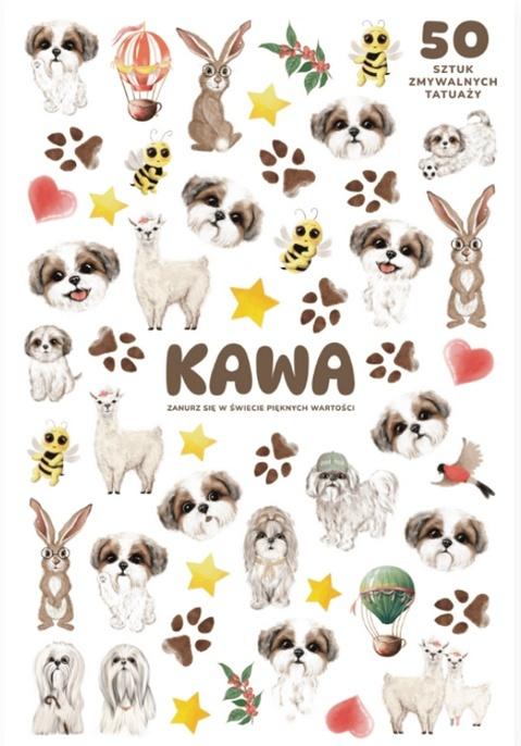 Kolorowe, zmywalne tatuaże inspirowane bohaterką serii książek Kawa dla dzieci autorstwa Anny Załęckiej, zilustrowanych przez Magdę Pakiet. W zestawie znajdziesz różne wzory przedstawiające sympatyczną shih tzu oraz motywy z jej przygód.