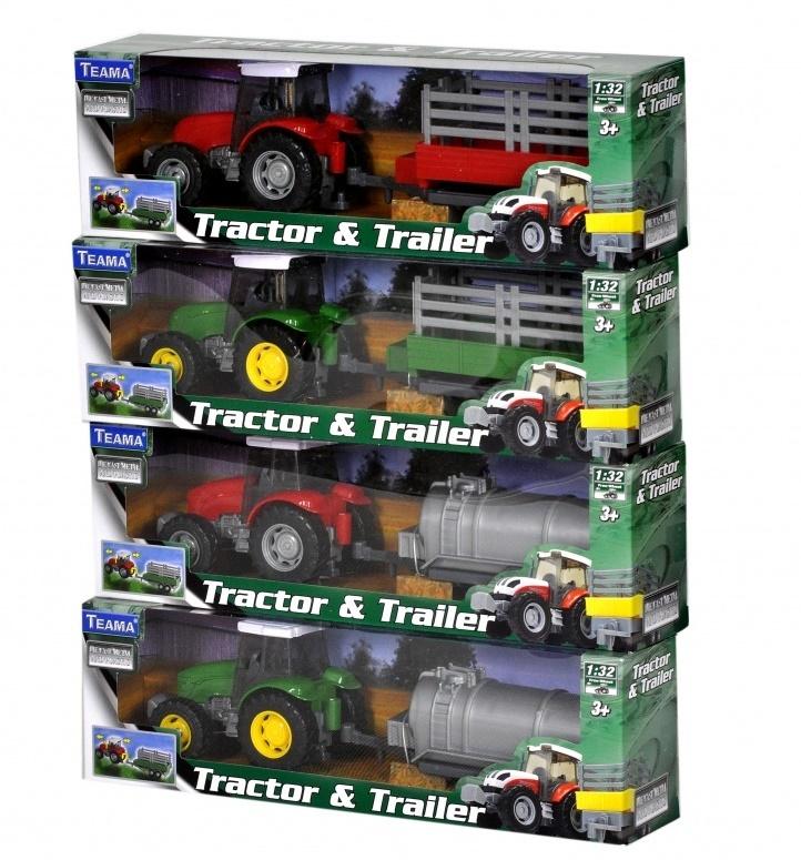 Zdjęcie poglądowe. Zabawka w kolorze czerwonym Traktor z beczkowozem w skali 1:32 w kolorze czerwonym