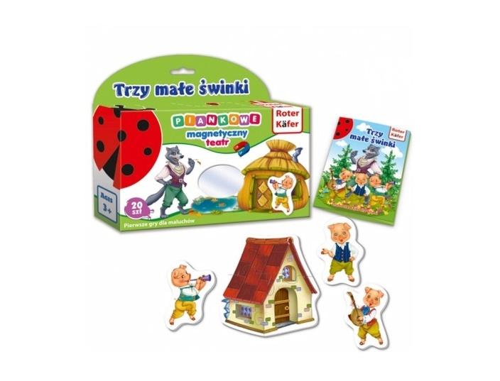 Teatr magnetyczny "Trzy Małe Świnki" nie potrzebuje dużej sceny i ogromnych dekoracji – można się bawić na każdej powierzchni. W takiej grze treściowo-fabularnej przejawia się charakter i twórcza ekspresja dziecka.