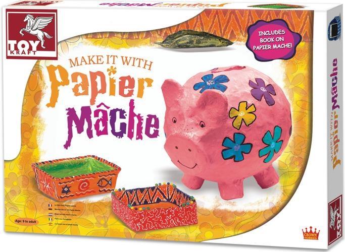 Zawartość zestawu i instrukcja umożliwiają zrobienie świnki-skarbonki, pudełka, ozdobnego liścia, uchwytu na telefon, miski lub pojemnika na papiery. Zestaw zawiera: gazetę, opakowanie gazy, 2 kleje, farby temperowe 6 kolorów, białą farbę akrylową, 4 wykrojniki, wazelinę, pędzelek, 2 baloniki, plastikowy korek, misę i instrukcję.