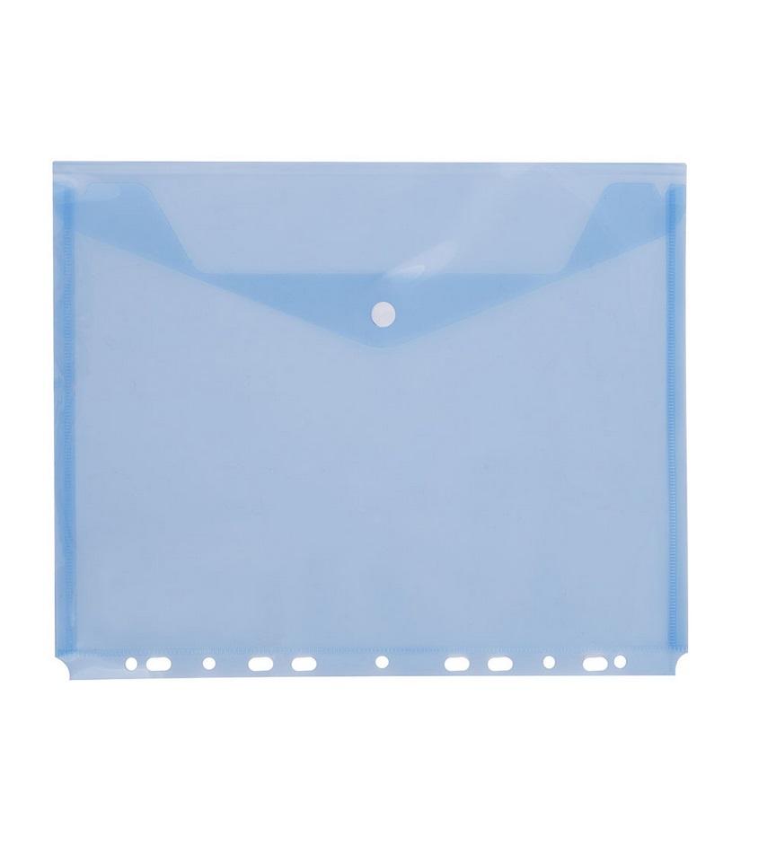 - klasyczna teczka kopertowa z uniwersalną perforacją umożliwiająca wpięcie do każdego typu segregatora - rozmiar A4 - wykonana z folii PP - zamykana na zatrzask - transparentna niebieska