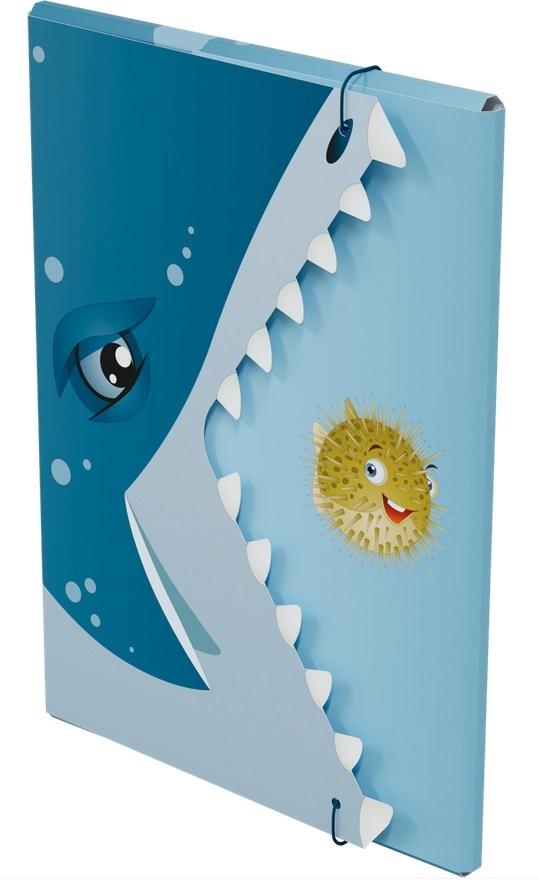 Rekin jest bardzo silnym zwierzęciem, jest drapieżnikiem. Mogłoby się wydawać, że ta malutka rybka wcale nie ma z nim szans. Ale czy na pewno? To, że ktoś jest wielki nie oznacza, że wszystko może, że niczego się nie boi, że sprosta każdemu zadaniu. A gdyby tak spojrzeć trochę bardziej metaforycznie na teczkę. Ja to ta mała rybka, rekin to wyzwanie, czyli coś co muszę zrobić, ale strasznie mnie to przeraża. Zupełnie nie wiem jak mam się zabrać do tego tematu. Bo co ja mogę? Jestem tylko małą, nic nie potrafiącą rybką! A teraz spójrzmy na to inaczej. Rekin, ten wielki zły zwierzak ma szeroko otwartą paszczę z tymi ogromnymi wielkimi zębami, a rybka jest taka uśmiechnięta jakby właśnie wygrała na loterii! Czysta abstrakcja? A może jednak coś w tym jest? Są takie chwile w życiu, gdy myślimy że już nie damy rady, że nie możemy niczego osiągnąć, że do niczego się nie nadajemy. Każdy może mieć chwilę słabości. To zupełnie naturalne. Ale życie to nie bajka, to ciągłe wyzwania. To jak je przeżyjemy zależy od nas, od naszego nastawienia. Może zamiast mówić: to się nie uda, lepiej pomyśleć: dam radę, a przynajmniej spróbuję!. Oczywiście nie jest to łatwe zadanie, ale jeżeli coś jest trudne do osiągnięcia, to później kiedy się już z tym uporamy, nasza satysfakcja jest o wiele większa! Zamiast od razu dawać za wygraną, warto jest przynajmniej spróbować uporać się z danym zadaniem czy problemem. Niech ta uśmiechnięta rybka będzie motywacją do działania! Niech ta teczka pomoże uporządkować ważne dokumenty. Niech ten rekin odpłynie w siną dal i zabierze ze sobą zmartwienia. Jedna teczka, niby tylko teczka, a jednak tak bardzo może dać do myślenia i być może zachęcić do działania! Powodzenia!
