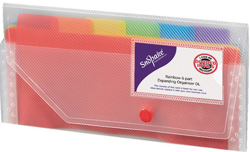 Teczka w formacie DL. Wykonana z polipropylenu. W środku znajduje się 6 kolorowych przekładek z indeksem. Na zewnątrz posiada miejsce na wsunięcie wizytówki. Zamykana na zatrzask.