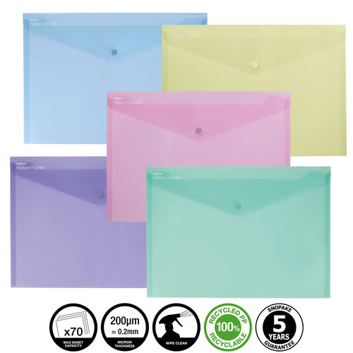 Teczka A4 marki Snopake wykonana z przezroczystego polipropylenu, wyprodukowanego zgodnie ze standardem GRS (Global Recycled Standard). Idealna propozycja dla osób, które w trosce o środowisko naturalne świadomie wybierają ekologiczne produkty. Polipropylen użyty do produkcji teczki pochodzi w 100% z materiałów z recyklingu i w 100% nadaje się do ponownego przetworzenia.