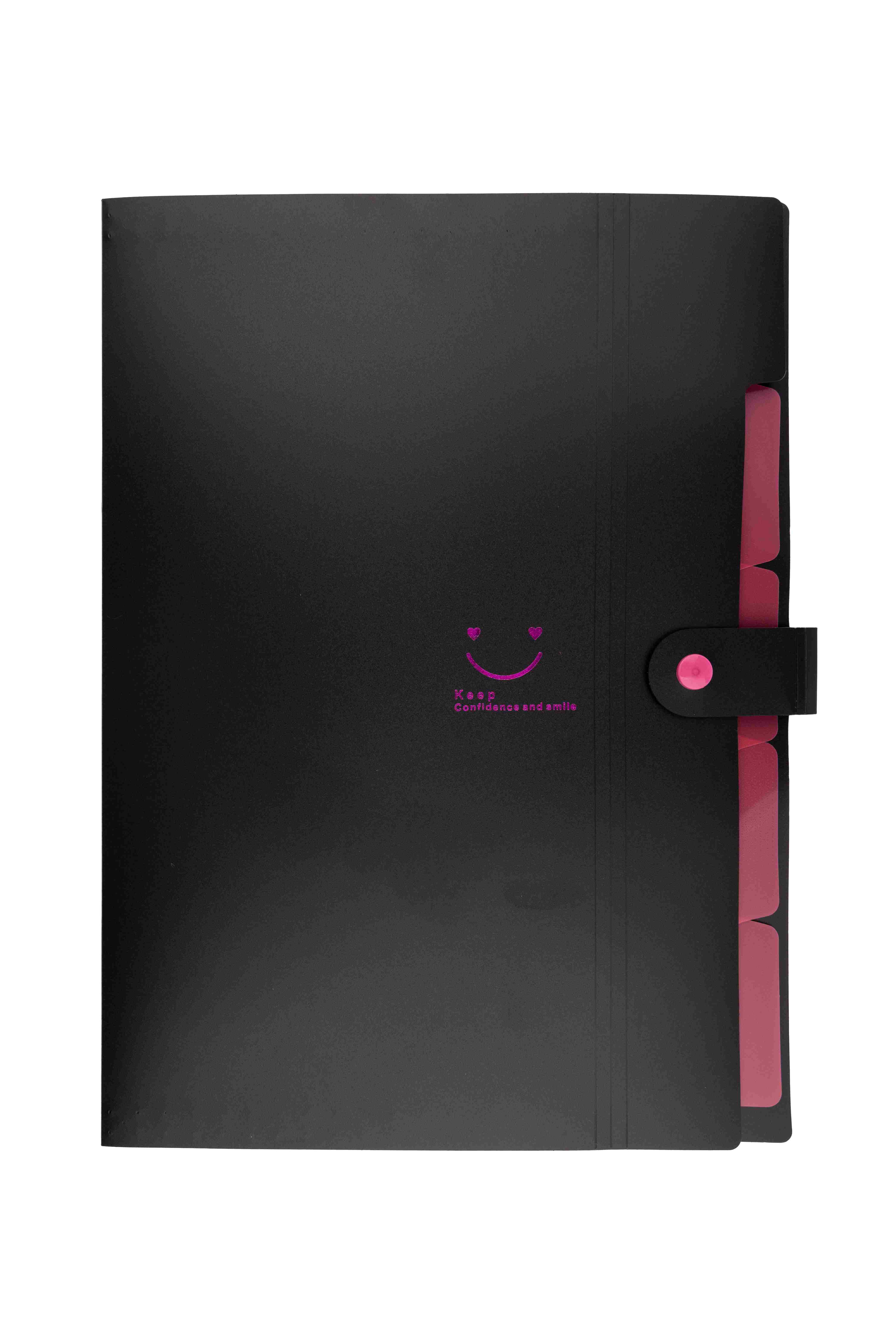 posiada 5 przegródek oddzielonych 4 registrami dla łatwiejszej organizacji dokumentów - miejsce na oznaczenie zawartości, co umożliwia sortowanie dokumentów według tematów lub alfabetycznie,