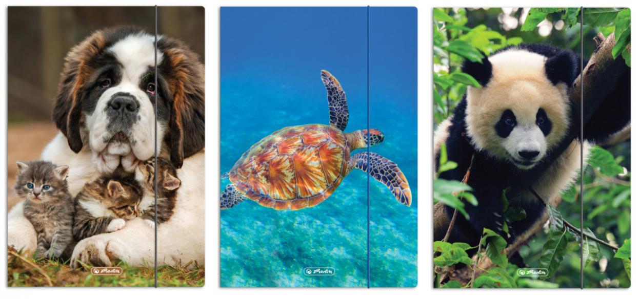 Lakierowana okładka 350g, trzy wewnętrzne zakładki zabezpieczajace dokumenty przed wypadaniem, elastyczna gumka zapewniajaca pewne zamknięcie teczki, grafika spójna z zeszytami Herlitz z tej samej serii. Mix wzorów - towar wysyłany losowo.