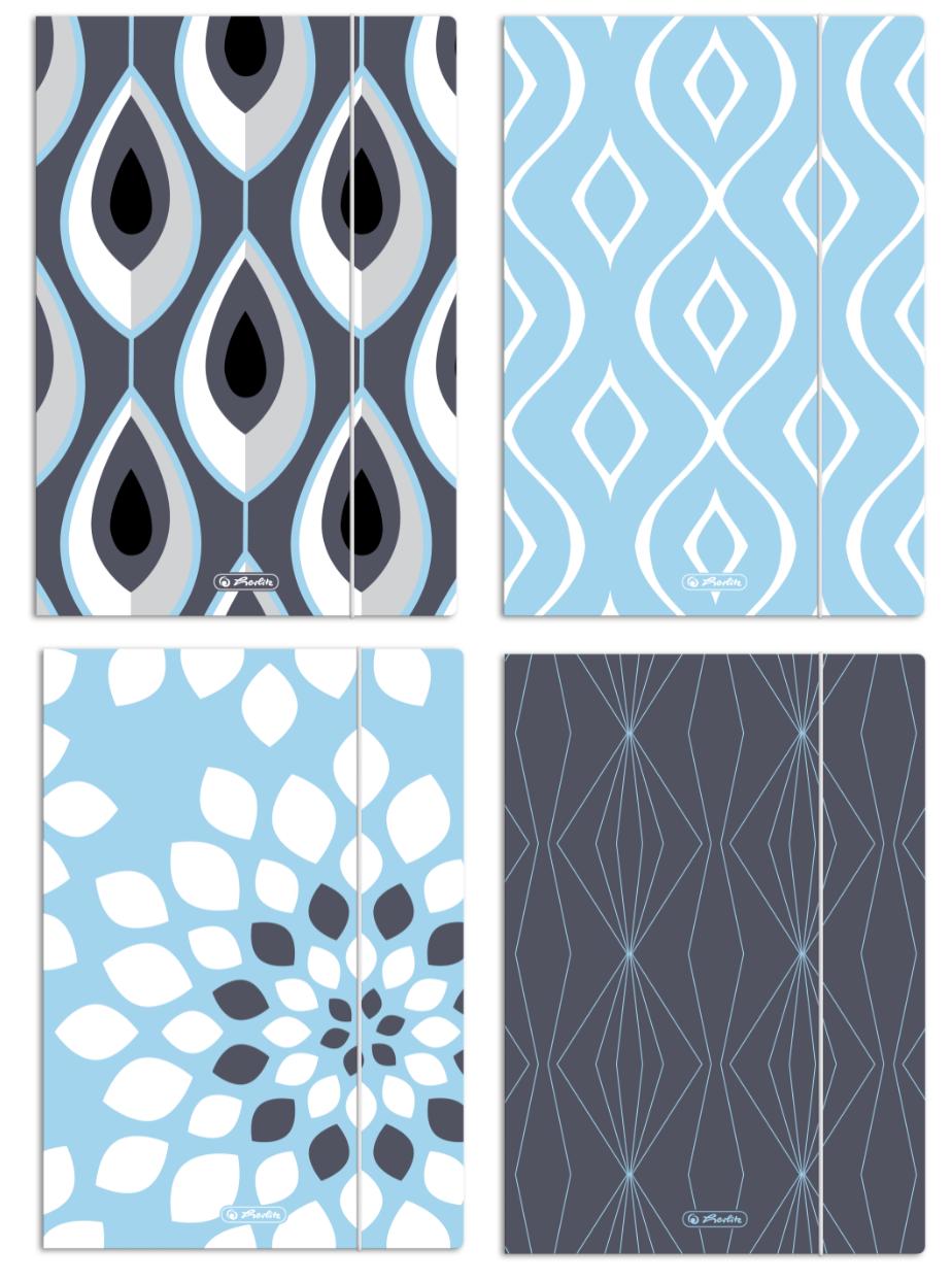 Lakierowana okładka 350g, trzy wewnętrzne zakładki zabezpieczajace dokumenty przed wypadaniem, elastyczna gumka zapewniająca pewne zamknięcie teczki, grafika spójna z zeszytami Herlitz tej samej serii. Mix wzorów - towar wysyłany losowo.