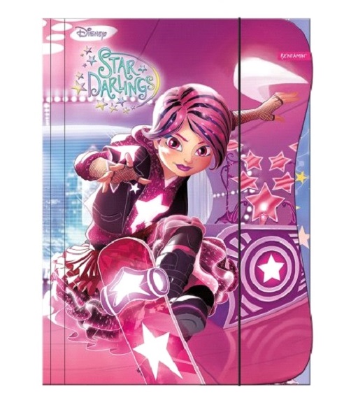 Teczka z gumką A4, wykonana ze sztywnego kartonu, nadruk zewnątrz i wewnątrz wielokolorowy. Zewnętrzna część pokryta połyskliwą folią. Gumka dopasowana kolorem do kolorystyki zadruku.