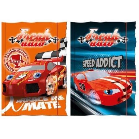 Teczka z gumką A4, wykonana ze sztywnego kartonu, nadruk zewnątrz i wewnątrz wielokolorowy. Zewnętrzna część pokryta połyskliwą folią. Przednia część teczki wycięta w fantazyjny kształt. Gumka dopasowana kolorem do kolorystyki zadruku. Na wewnętrznej patce - zakładka do książki do samodzielnego wycięcia. MIX 2 wzorów. Wysokość: 31,7 cm Szerokość: 23,5 cm