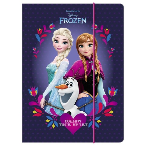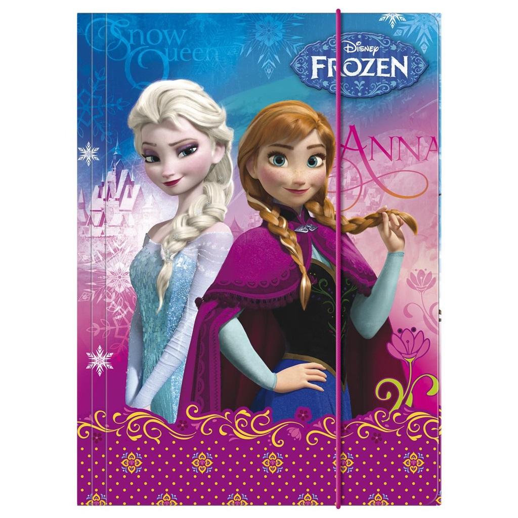 Teczka kartonowa zamykana na gumkę, ozdobiona motywami Kraina Lodu.