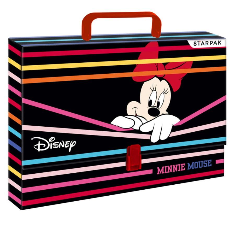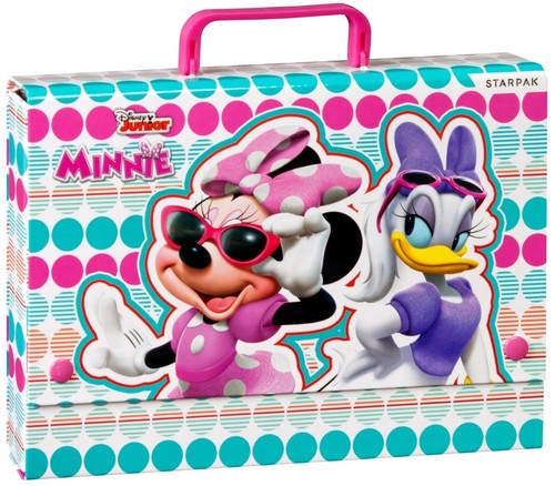 Sztywna teczka wykonana z grubego, lakierowanego kartonu, zamykana na dwa metalowe klipsy, wyposażona w solidną rączkę, wzmocniona metalowymi nitami. Idealna na zajęcia pozaszkolne i przechowywanie prac dziecka.
