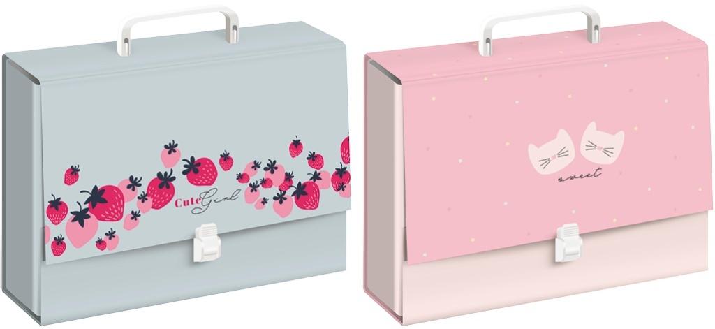 Format: C4. Szerokość: 5 cm. Jednokomorowa teczka z grubej i wytrzymałej tektury. Rączka i zamek wykonane z plastiku. Dostępna w 4 wzorach. Produkt idealny na bloki, prace plastyczne oraz wszelkie notatki. Szerokie dno pomieści farby i kubek.