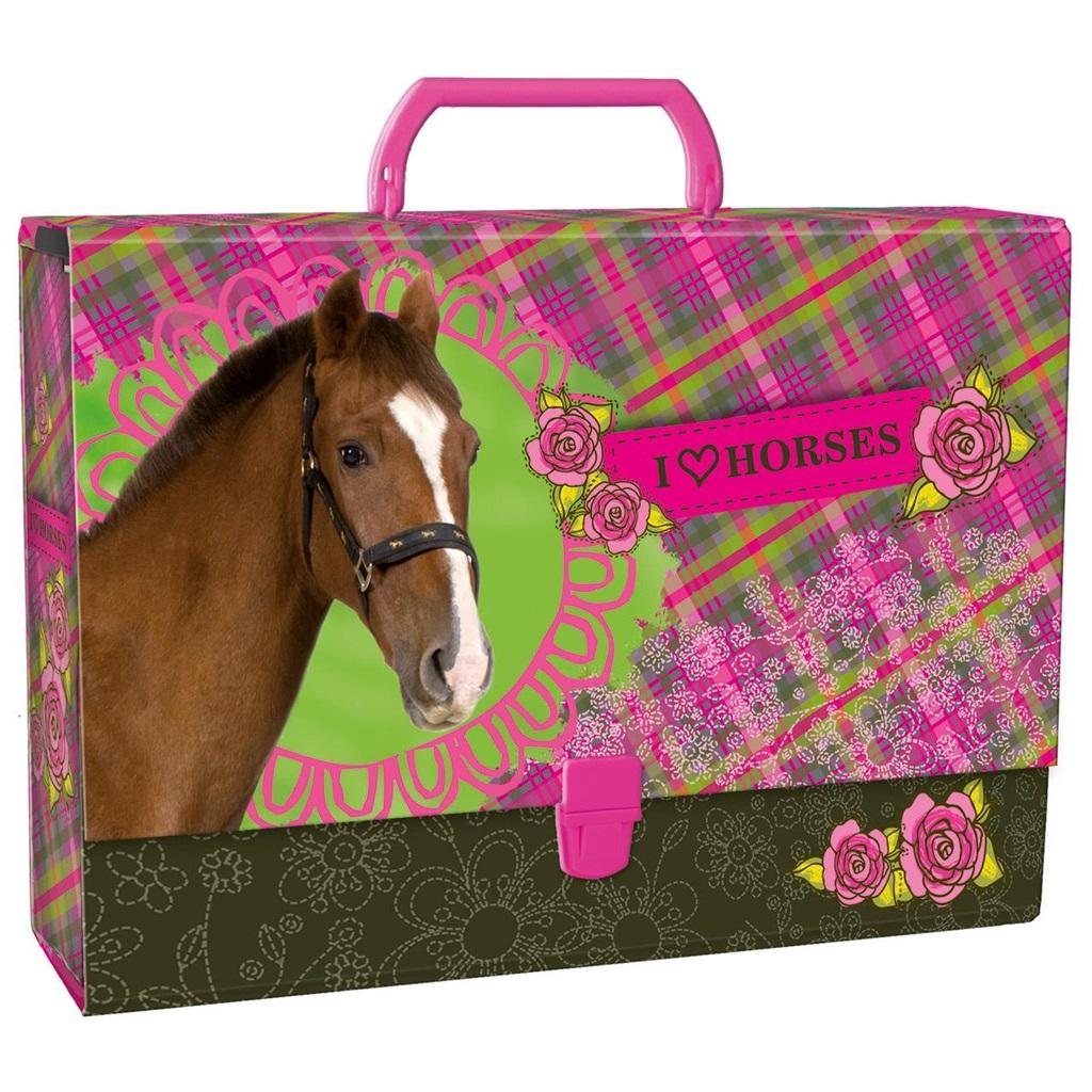 Teczka kartonowa z rączką ozdobiona wizerunkami koni.