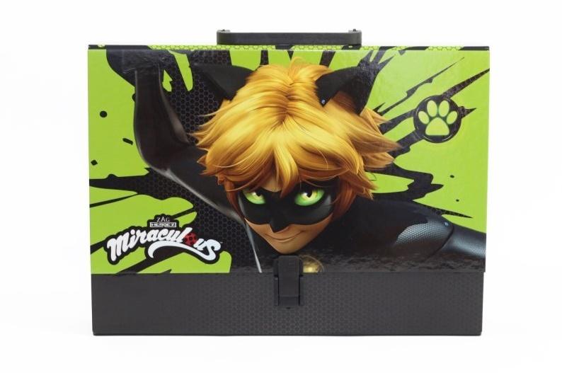Teczka walizeczka - kartonowa/sztywna teczka z rączką, zapinana plastikowym mechanizmem z przodu. Kolorowa na zewnątrz, pokryta połyskową folią, wewnątrz zadruk wielokolorowy dopasowany kolorystycznie do zewnętrznej części teczki. Wysokość:24,8 Szerokość:31,5 Głębokość: 6,5 cm, 8 sztuk w kartonie