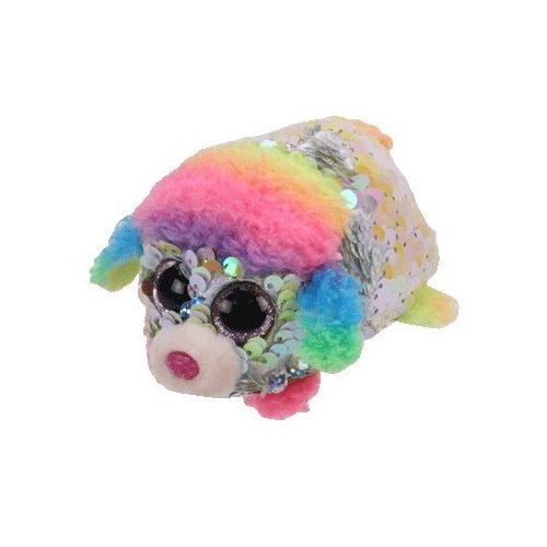 Pluszak ma błyszczące, brokatowe oczy oraz jest pokryty CEKINAMI