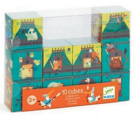 10 tekturowych klocków ( sześciany ), które układając utworzą zamek warowny wraz z mieszkańcami.