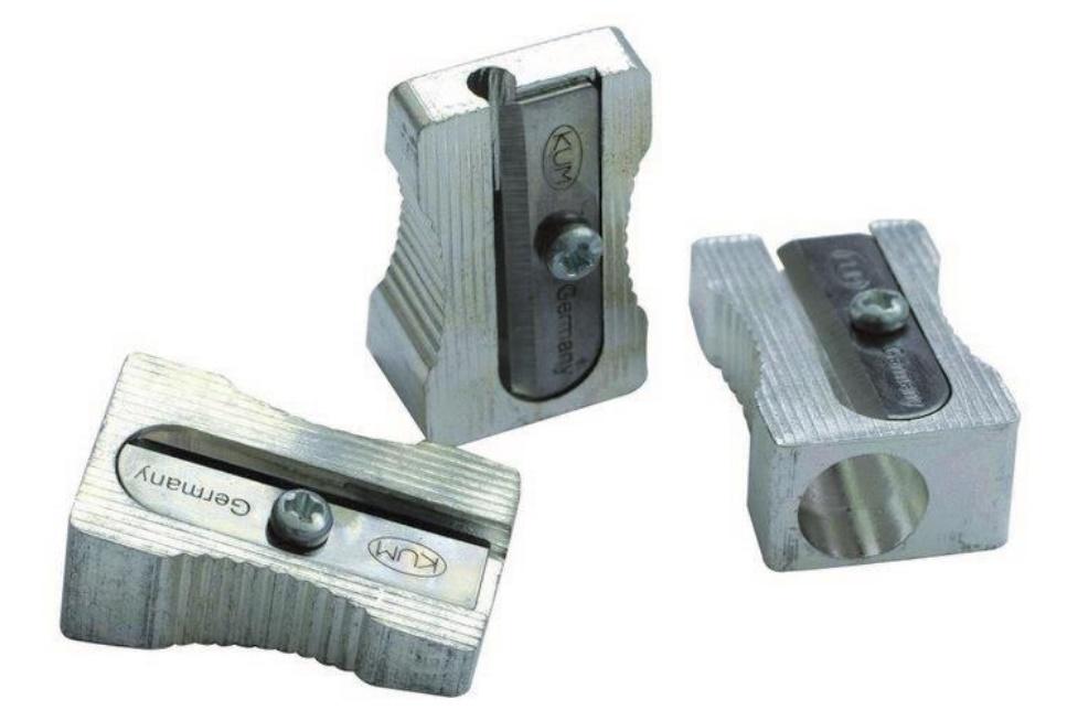 Temperówka metalowa o profilu klinowym, po bokach powierzchnia prążkowana , posiada jedno ostrze nożowe, jeden otwór do temperowania. Jest niewielka, poręczna, bardzo dobrze temperuje.