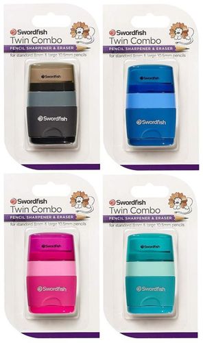 Temperówka z Gumką 2w1. Posiada dwa otwory do ostrzenia o średnicach 8