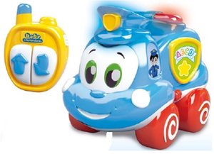 Pojazd z pilotem na podczerwień.Edukacyjna, mówiąca zabawka: uczy pierwszych liter i rozwija motorykę oraz poczucie równowagi.3 piosenki i sympatyczne efekty dźwiękowe.Świecąca syrena alarmowa.3 sposoby zabawy: porusza się sam, za pomocą pilota oraz cichobieżnie.Funkcja Try Me (Wypróbuj mnie), widoczny przycisk On/Off.