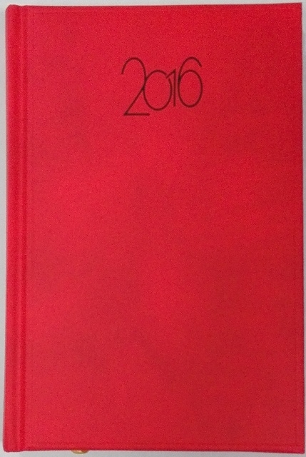 Terminarz na rok 2016, papier chamois, druk wnętrza w dwóch kolorach, perforowane narożniki kartek, tasiemka, każdy dzień na oddzielnej stronie, imieniny, święta, patron dnia, informacja o liturgii dnia, wschód-zachód słońca, fazy księżyca, myśl na każdy dzień, terminarz spotkań, miejsce na notatki, skrócone kalendarium miesiąca bieżącego, miejsce na adresy i telefony.