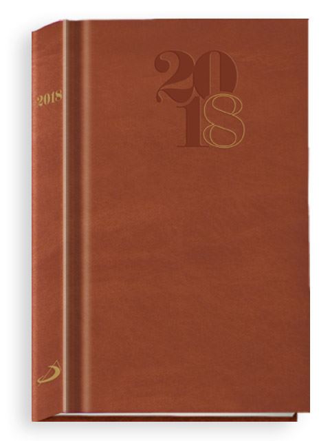Terminarz na rok 2018, papier chamois, druk wnętrza w dwóch kolorach, perforowane narożniki kartek, tasiemka, każdy dzień na oddzielnej stronie, imieniny, święta, patron dnia, informacja o liturgii dnia, wschód-zachód słońca, fazy księżyca, myśl na każdy dzień, terminarz spotkań, miejsce na notatki, skrócone kalendarium miesiąca bieżącego, miejsce na adresy i telefony.