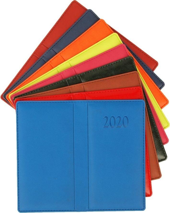 Kalendarz kieszonkowy tygodniowy, w pomniejszonym formacie A6, okładka z różnorodnych miękkich materiałów pokryciowych, oferowany wyłącznie w miksach kolorystycznych.